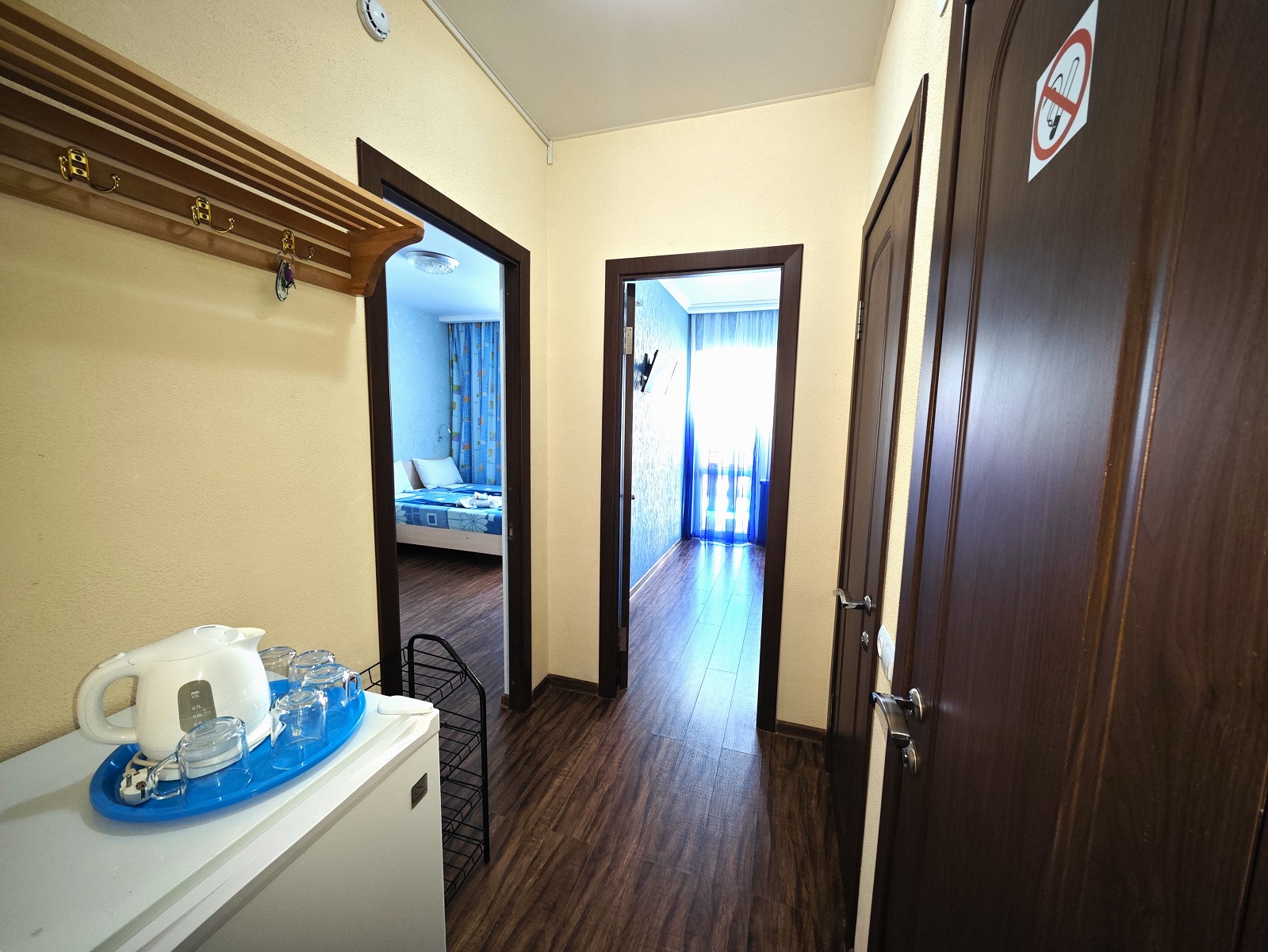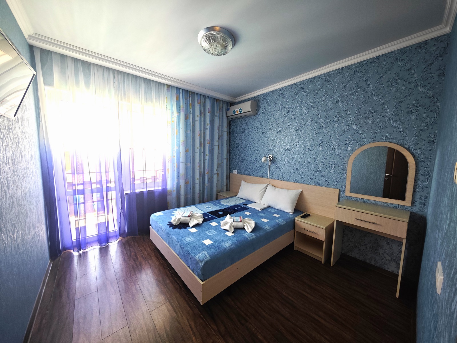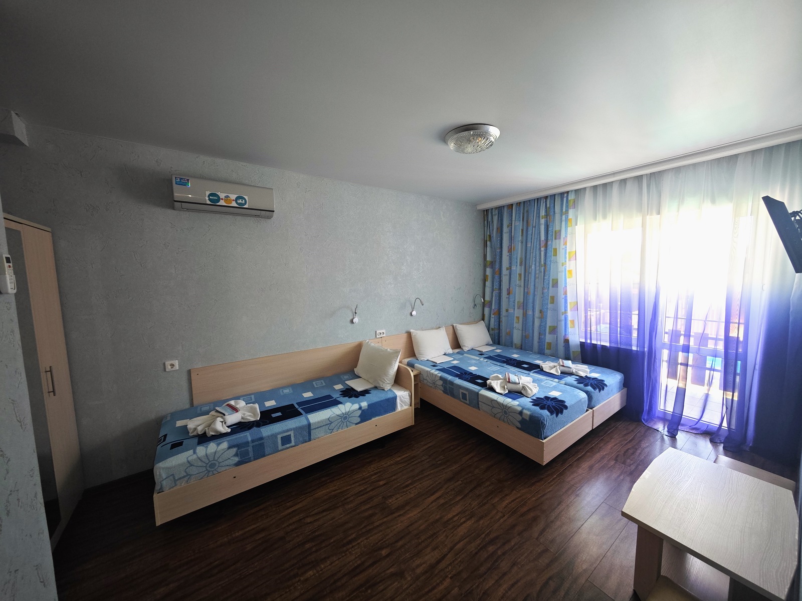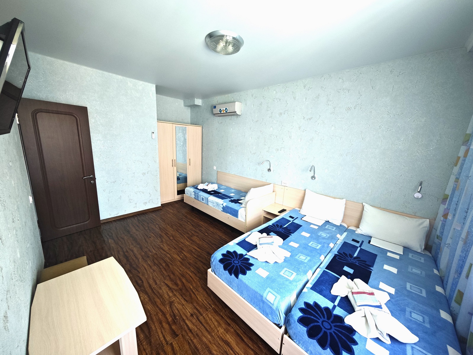 ТЕХНИКА — фен, мини-холодильник, в каждой комнате по сплит-системе и LCD-телевизору (с USB-разъемом), электрочайник;